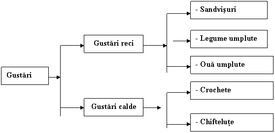 Clasificarea gustarilor obisnuite, in functie de modul de servire si procesul tehnologic aplicat la obtinerea lor, este indicata la schema 1.