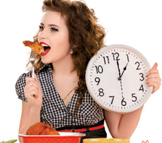 Ziua, cel mai bine este sa mâncam: oua (dimineata sunt cel mai indicate, iar seara devin indigeste), portocale, morcovi, mazare, fasole, afine, carne, capsuni si rosii. Seara, putem mânca: banane, nuci, migdale, mere, cartofi, ridichi, telina, conopida, varza, peste slab, pere. Atentie, unele dintre aceste alimente contin multe calorii!