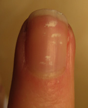 Leuconichia Provine din grecescul ,,leukos” ce inseamna alb si ,,onyx” ,unghie .Este decolorarea uneia sau mai multor unghii ,au cauze extrem de numeroase boli organice ,boli cutanate ,carente in zinc sau vitamina PP ,iCiteste tot ... 171 cuvinte