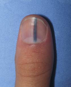 Melanonichia             Provine din grecescul ,,melas” care inseamna negru si ,,onix” , unghie. Coloratie brusca a unghiilor ,poate fi mono sau pluridactilica . Melanonichia poate fi produsa de contacte exter