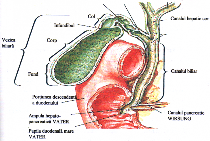 Vezicula biliara             Vezicula biliara are forma de para si este situata in fosa veziculei biliare de pe fata viscerala a ficatului.             Are o lungime medie de 8-10cm si capacitate