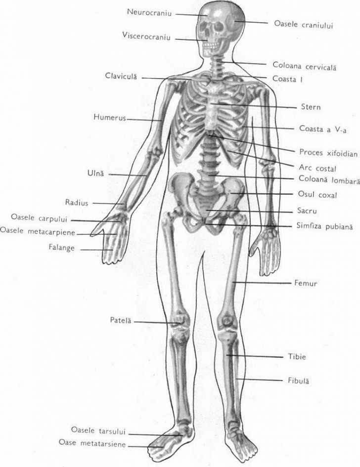 SISTEMUL OSOS Scheletul este format din peste 200 oase. Acestea sunt alcatuite dintr-un corp (diafiza), ce contine in interiorul ei canalul medular, in care se gaseste maduva osului si doua extremită