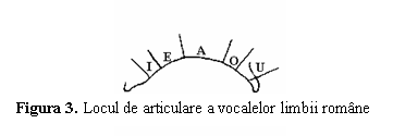 b) Dupa directia de deplasare a limbii inspre partea anterioara, mediana, posterioara, vom avea sunete: anterioare, centrale, posterioare.