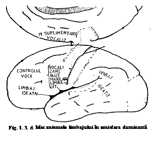 Sediul motor al vorbirii articulate este situat in aria corticala, a lui Bordmann. Miscarile gurii sunt localizate in aria 6aa si 6ba In cazuri de hemiplegie (adica de paralizie a unei jumatati a corpului datorita lezarii unei parti a caii nervoase motorii), bolnavul nu mai poate articula nici un sunet.