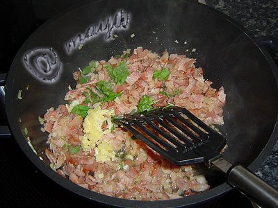 si verdeata, rupta(sau tocata, daca asa doriti). Se amesteca bine. Se presara