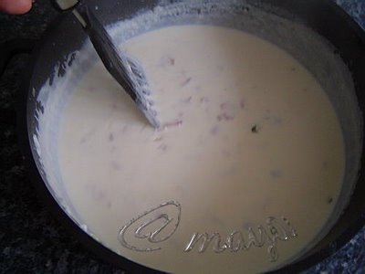 apoi se toarna laptele.Se amesteca,si se lasa sosul la fiert,la foc mic,pina