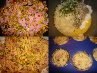 Stoarcem bine taieteii si ii amestecam cu legumele calite cu sunca si cu sosul de ou, smantana si cas. Condimentam dupa gust cu verdeturi.