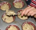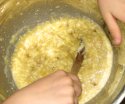 amestecul de faina peste mixtura cu banane si amesteca pana la