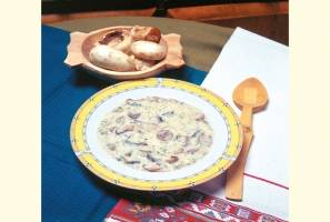 Ingrediente: 1kg ciuperci de padure, 3-4 cepe, 2leg. patrunjel, 150ml ulei, 1l lapte, 3 linguri faina, sare, piper