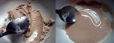 pana ce se lichefiaza, apoi se adauga 100ml de apa calduta si 2-3 linguri de