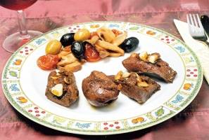 Inima de vitel cu prune, ciuperci si masline