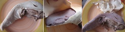 farfurie, o lasam sa se raceasca putin si apoi desfacem pielea de pe ea ( vezi