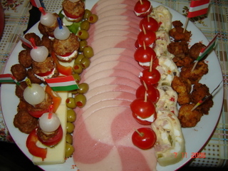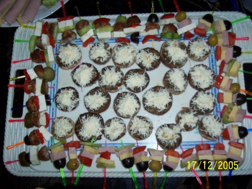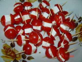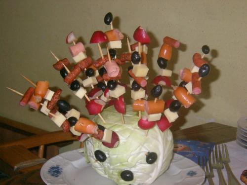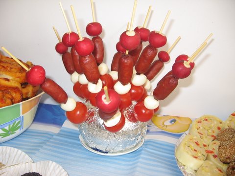 ardei cu crema de branza, arici - frigarui aperitiv - chiftelute, mozarella