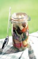 Toate legumele se taie in bucati potrivite si se pun in bidon. Condimentele si mirodeniile se adauga si se amesteca bine cu celelalte ingrediente. Se fierbe apoi apa cu otet (4l de apa la 2l de otet), se adauga sare (25g la 1l de lichid) si se toarna peste legume. Se inchide bidonul.