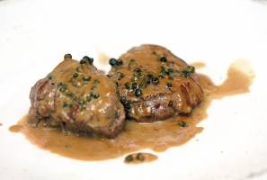 Ingrediente: 400g muschi de vita, 10g piper, 50g unt, 50ml ulei, 100ml smantana, 40ml coniac, sare