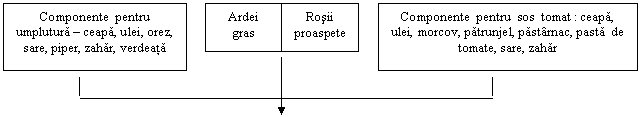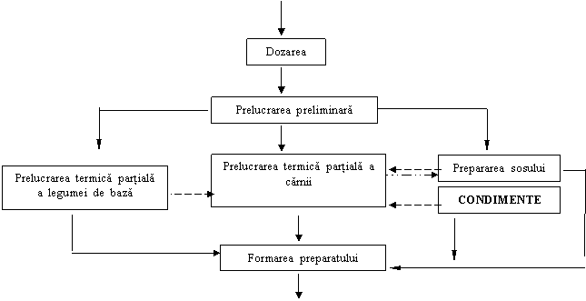 Schema tehnologica de obtinere a preparatelor de baza din legume si sos este urmatoarea: