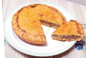 Mod de preparare: Se face un aluat din faina, margarina, 1 galbenus, 3 linguri cu apa si sare. Se framanta bine si se lasa la rece o ora. Pentru umplutura se curata ciupercile si se spala bine, apoi se fierb 20 de minute in apa cu sare. Se scurg bine de apa si se dau prin masina de tocat. Separat, se calesc usor ceapa si usturoiul tocate marunt. Se pun apoi ciupercile si se calesc pana se evapora toata apa. Se potriveste de sare si piper si, dupa ce se raceste, se pun 1 ou, patrunjelul tocat marunt si se amesteca bine. Se intinde aluatul intr-o tava unsa cu margarina si tapetata cu faina si se pun ciupercile calite. Cascavalul se da pe razatoare si se amesteca cu un ou. Se intinde uniform deasupra ciupercilor. Se coace la cuptor 30-40 de minute sau pana cand cascavalul prinde o crusta aramie. Se consuma imediat, calda.