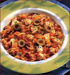 Orez grecesc cu rosii si branza de oaie Ingrediente: 2 catei de usturoi, 1 ceapa, 2 ardei grasi galbeni, 200 g orez, sare, 3 linguri ulei, 500 g rosii taiate (decojite, din conserva), 200 g telemCiteste tot ... 148 cuvinte