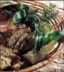 Patiserie cu verdeturi aromate Paine cu ierburi aromate          Ingrediente (pentru o paine mare): 500 g faina + 50 g faina pentru planseta, 20 g drojdie, 1 lingura busuioc taiat (cu foarfeca), 1 ling