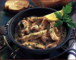 Papricas de pui cu ciuperci          Ingrediente: 1 ceapa, 250 g ciuperci, 1/2 legatura patrunjel verde, 400 g piept de pui, piper, 2-3 linguri faina, 1 lingura unt, 2 linguri ulei, cca 200 ml zeama conce