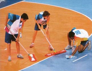 Doua culori contrastante care trebuie sa se deosebeasca in mod clar de culoarea podelei. Combinatiile obisnuite sunt alb si rosu, albastru si alb sau alb si negru.
