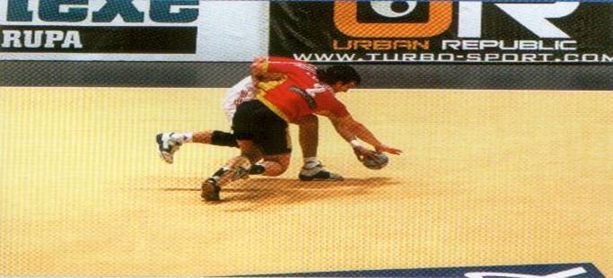 Un numar de maxim 6 jucatori si, daca este cazul, portarul unei echipe pot patrunde in acelasi timp in acest spatiu In conformitate cu regulamentul, jucatorii se pot misca liber in acest spatiu avand sau nu posesia mingii Un jucator se considera ca a parasit acest spatiu atunci cand atinge cu un picior suprafata din afara spatiului de joc |
