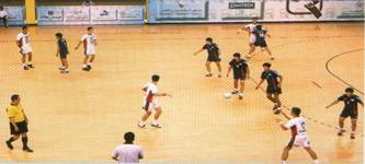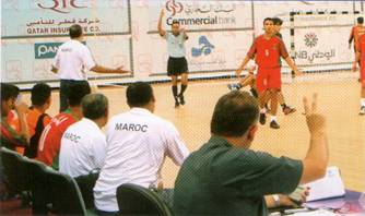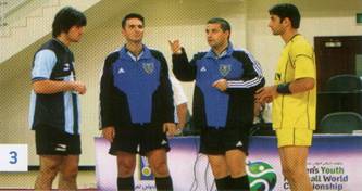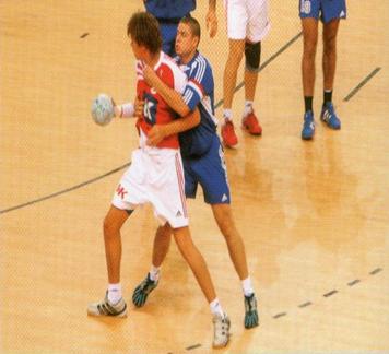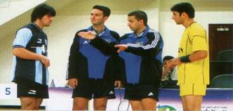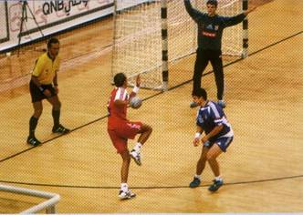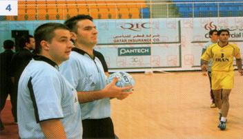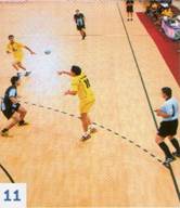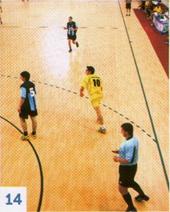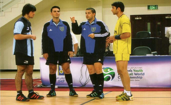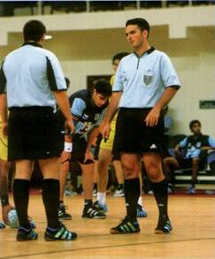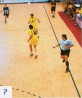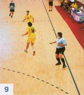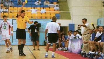 Doi arbitrii, cu drepturi egale, vor fi responsabili pentru fiecare meci. Ei vor fi asistati de un cronometror si un scorer. Arbitrii supravegheaza comportamentul jucatorilor si al oficialilor de echipa, din momentul intrarii acestora in incinta de desfasurare a jocului si pana la parasirea ei. Inaintea jocului, arbitrii sunt responsabili de inspectia terenului de joc, a portilor si a mingii de joc; arbitrii decid mingea de joc (regulile 1 si 3:1). Arbitrii supravegheaza ca cele doua echipe sa fie in echipament de joc corespunzator. Ei verifica raportul de joc si echipamentul jucatorilor. Ei se asigura ca in spatiul de schimb numarul jucatorilor si al oficialilor este in limitele regulamentului si stabilesc prezenta si identitatea "responsabilului oficial al echipe", pentru fiecare echipa. Orice neconcordante trebuiesc corectate (4:1-2 si 4:7-9). Efectuarea tragerii la sorti (10:1) se face de catre unul dintre arbitrii, in prezenta celuilalt si a responsabilului oficial al echipei, pentru fiecare echipa, sau a unui oficial de echipa sau jucator care participa in numele responsabilului oficial al echipei. In principiu, tot jocul va fi arbitrat de aceeasi arbitri. Este responsabilitatea lor sa se asigure ca jocul se desfasoara in conformitate cu regulamentul de joc si ei trebuie sa sanctioneze orice abatere de la regulament (vezi, totusi, regulile 13:2 si 14:2). Daca unul dintre arbitri nu poate termina jocul, celalalt arbitru continua sa arbitreze singur (pentru competitiile IHF si continentale, aceasta situatie se trateaza in conformitate cu regulamentele competitiilor respective). Daca amandoi arbitrii fluiera o abatere si sunt de acord cu echipa care trebuie sanctionata, dar au opinii diferite in legatura cu severitatea sanctiunii, se va aplica cea mai severa. Daca amandoi arbitrii fluiera pentru a sanctiona o abatere, sau mingea a parasit terenul, si cei doi arbitri au pareri diferite in ceea ce priveste echipa care trebuie sa se afle in posesia mingii, arunci trebuie sa se aplice decizia comuna a arbitrilor, la care ajung dupa consultari. Daca nu pot ajunge la o decizie comuna, va prevala opinia arbitrului de centru. Un time-out este obligatoriu in acest caz. Dupa consultari, ei semnalizeaza clar ce au hotarat, si jocul se reia cu fluierul arbitrului (2:8d, 15:5). Amandoi arbitrii sunt responsabili pentru notarea scorului. Arbitrii noteaza, de asemenea, avertismentele, eliminarile, descalificarile si eliminarile definitive. Amandoi arbitrii sunt responsabili pentru controlul timpului de joc. Daca exista indoieli asupra corectitudinii timpului de joc, arbitrii vor ajunge la o decizie comuna (vezi regula 2:3). Arbitrii sunt responsabili pentru completarea corecta a raportului de joc, dupa joc. Eliminarile (16:11) si descalificarile de felul celor indicate la regula 16:8, paragraful 4, trebuie explicate in raportul de joc. Deciziile luate de arbitri pe baza observarii faptelor de catre ei sau a judecatii lor sunt finale. Se poate face apel numai impotriva deciziilor care nu sunt in conformitate cu regulamentul. In timpul jocului, numai "responsabilul oficial de echipa" are dreptul sa se adreseze arbitrilor. Arbitrii au dreptul sa suspende temporar sau permanent un joc. Trebuie facute toate eforturile pentru continuarea jocului, inainte de a lua decizia de a suspenda permanent un joc. Echipamentul negru este destinat initial arbitrilor. |