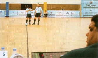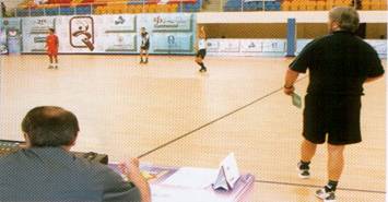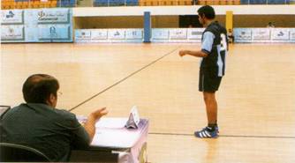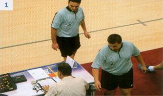 Scorerul supravegheaza jucatorii si oficialii de echipa de pe partea sa. Ei au dreptul sa intre pe teren. |