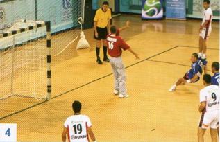in aer, in timpul executarii unei aruncari de la 7m = fluierati reexecutarea aruncarii, indiferent daca mingea a intrat sau nu in poarta (2:4).