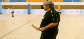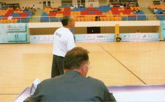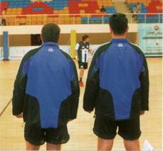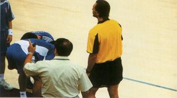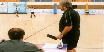 Atunci cand fluiera intreruperea timpului de joc, cronometrorul porneste un alt ceas pentru time-out-ul de echipa. El urmareste jucatorii si oficialii de pe partea sa. |
