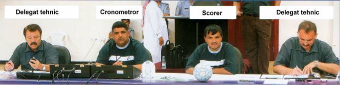 Scorerul, cronometrorul si delegatul tehnic dau mana si pun la punct ultimele detalii. |