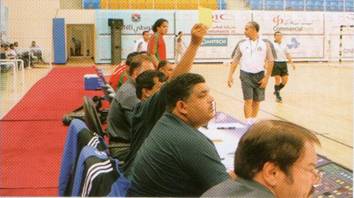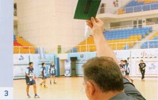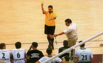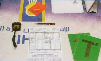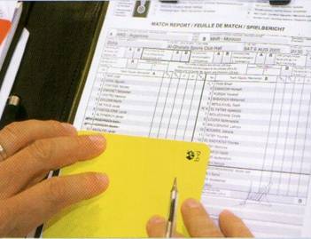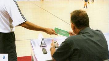 Atunci cand echipele revin pe teren, scorerul si cronometrorul le inmaneaza cartonasele verzi |