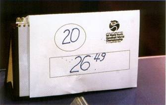 Cartonasul verde este asezat pe masa cronometrorului, in asa fel incat sa poata fi vazut de toata lumea. |