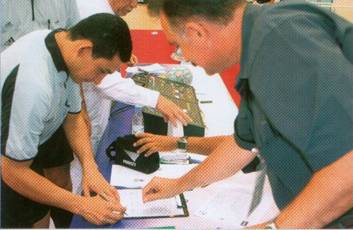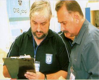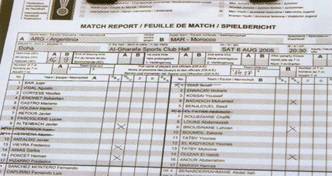 La jocurile IHF: Persoana responsabila cu statistica compara notitele sale cu cele ale scorerului (goluri, sanctiuni) |