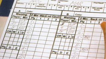 Scorerul verifica raportul de joc (scorul, sanctiunile si time-out-urile de echipa). |