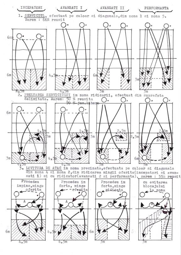- 50 % (toti jucatorii) si 70 % (jucatorul libero) reusita a preluarii serviciului pe culoar si diagonala, efectuata din zonele 1 si 5;