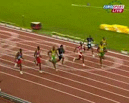 Se poate spune deci, ca toti alergatorii din fimala probei de 100 m masculin au avut timpi de reactie care s-au incadrat intr-un interval de aproximativ 0,08 sec, cu eroare de maximum 0,03 sec pentru cei care au miscat pe primul cadru de film, si 0,03 sec + (0,04 sec ale primului cadru filmat) eroarea maxima dintre cei care au miscat in cadrul al doilea. Oricat ar parea de curios , in cida inaltimii sale Bolt calca la linia de 10 m cu doua talpi inaintea celorlalti.