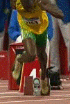 Lansarea de la start - In ciuda inaltimii sale Usain Bolt pe parcursul primilor metri, are frecventa pasilor aproape identica cu a celorlalti finalisti mult mai scunzi. Acest lucru i-a permis sa se situeze in prim-planul plutonului la 30 m, cand, trecand in faza urmatoare a cursei a inceput sa se desprinda in castigator.