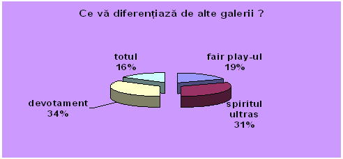 In concluzie caracteristicile si particularitatea fenomenului Ultras "alb-violet" reprezinta obiectul de studiu, incepand de la simpla prezenta pe locul sacru din peluza a suporteriilor, pana la indentificarea orasului cu acest grup.