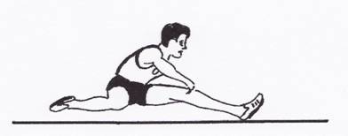 -din sezand, luarea pozitiei de trecere a gardului cu piciorul de atac intins cu laba piciorului in flexie dorsala, piciorul de remorca dezaxat sprijinit pe sol,