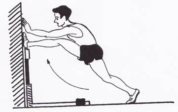 De pe loc, exersarea miscarii piciorului de remorca la perete.