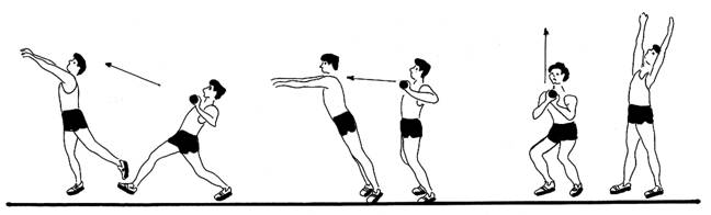 aruncare de tip impingere: bratul aruncatorului se afla inapoia si dedesuptul obiectului -