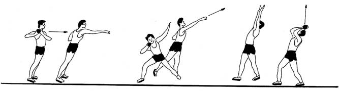 Dupa forma de aplicare a fortei asupra obiectului deosebim trei tipuri de aruncari