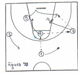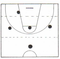 Conducatorul de joc sau fundasul defensiv trebuie sa manuiasca foarte bine mingea, schimband locul si circulatia mingii de pe o parte pe alta a terenului. Este un foarte bun aruncator la cos de la distanta, fiind totodata si jucatorul de baza in asigurarea echilibrului defensiv al acestui sistem de atac.