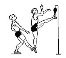 - stand lateral fata de planul stalpilor, simularea trecerii a stachetei, de pe loc, prin pasire (piciorul de avantare se afla spre stacheta);