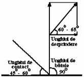 - Unghiul de contact - format de orizontala locului de bataie cu dreapta, care uneste locul de bataie si centrul general de greutate: