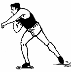 - miscarea de aruncare propriu-zisa, incepe din pozitii de sprijin pe un picior indoit, dar acest moment trebuie redus cat se poate de mult, iar atletul sa realizeze trecerea cat mai rapida in sprijin bilateral, sprijin corect pentru efortul final.