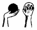 mingea este oferita din mana in mana prin indoirea trunchiului inainte, prin "tunelul" format de departarea picioarelor;