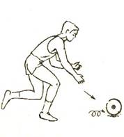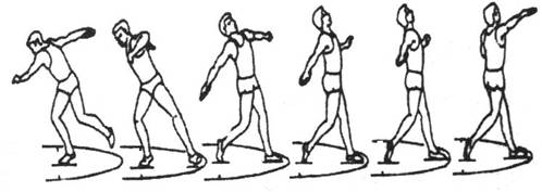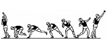 - fortele care intra in actiune sunt produse in ordine de: contractia maselor musculare mari ale membrelor inferioare, ale bazinului si trunchiului. Efectul lor creste, in masura in care atletul reuseste "sa depaseasca" mai mult obiectul (trenul inferior depaseste trenul superior);