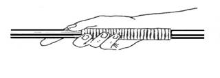 Priza sau tinerea mingii poate aplica doua prize in functie de marimea (volumul) mingii: tinuta pe radacina degetelor, cu ajutorul degetului mare, al aratatorului si al mijlociului cat si cu degetului mare, aratatorului, al mijlociului si al inelarului, care se asaza pe minge.